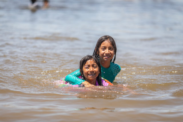 ¡Los niños del Valle de Mexicali se divierten con una ‘guerra’ de agua! El río Colorado fluye más allá de un lugar llamado Vado Carranza, cerca del Ejido Carranza, a la orilla de la carretera, y muchas familias que viven cerca han estado organizando días de campo aquí, nadando y asoleándose en la arena. Los niños, en particular, ¡nunca habían visto esta parte del río con agua! Adolescentes y familias salpicando por todos lados, ¡como si fuera una gran fiesta!
