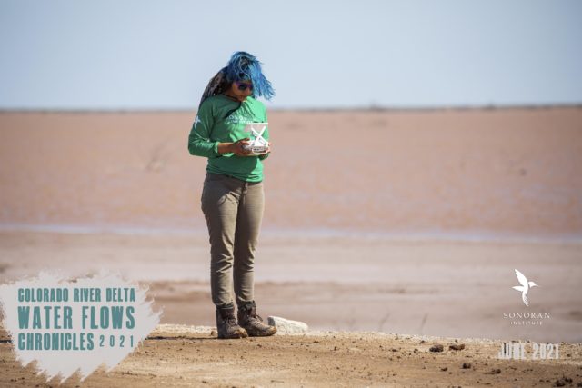 Los colores del amanecer y las hermosas vistas del amanecer traen tanta paz, pero, ¿a qué costo? Nuestro equipo carga el equipo en la oficina y se pone en marcha a las 4:00 a.m., conduciendo una hora y media hasta el alto estuario para pasar el día al aire libre en las temperaturas de verano que derriten la mente. Gran parte de la cuenca del río Colorado y América del Norte está experimentando una ola de calor y aquí el pronóstico ha sido de más de 45 ° C esta semana. Hoy hay luna llena, lo que significa que las mareas oceánicas son más altas. ¡El equipo ha llegado al alto estuario y la marea está subiendo! Los canales de marea comienzan a llenarse de agua color chocolate. ¡La marea está subiendo más y más! Aproximadamente a la 1:00 pm, el agua de la marea alcanzó el agua del río Colorado que fluía en el canal piloto. La conexión finalmente está sucediendo, el río y el mar se vuelven a encontrar. Las emociones del equipo son altas: nos sentimos felices, aliviados, esperanzados y agradecidos.